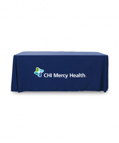 6' Standard PolyPoplin Throw style table cover with one color logo. Designed for quick and easy use while looking great. All corners are rounded meaning they will not gather and lay on the floor. Floor length on all 4 sides. Made from woven polyester. 72" L x 30" D x 29" H