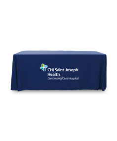 6' Standard PolyPoplin Throw style table cover with one color logo. Designed for quick and easy use while looking great. All corners are rounded meaning they will not gather and lay on the floor. Floor length on all 4 sides. Made from woven polyester. 72" L x 30" D x 29" H