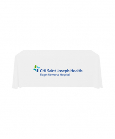 6' Standard PolyPoplin Throw style table cover with one color logo. Designed for quick and easy use while looking great. All corners are rounded meaning they will not gather and lay on the floor. Floor length on all 4 sides. Made from woven polyester. 72" L x 30" D x 29" H