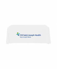 6' Standard PolyPoplin Throw style table cover with one color logo. Designed for quick and easy use while looking great. All corners are rounded meaning they will not gather and lay on the floor. Floor length on all 4 sides. Made from woven polyester. 72" L x 30" D x 29" H