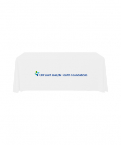 6' Standard PolyPoplin Throw style table cover with one color logo. Designed for quick and easy use while looking great. All corners are rounded meaning they will not gather and lay on the floor. Floor length on all 4 sides. Made from woven polyester. 72" L x 30" D x 29" H