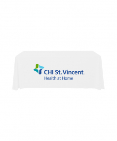 6' Standard PolyPoplin Throw style table cover with one color logo. Designed for quick and easy use while looking great. All corners are rounded meaning they will not gather and lay on the floor. Floor length on all 4 sides. Made from woven polyester. 72" L x 30" D x 29" H