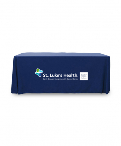 6' Standard PolyPoplin Throw style table cover with one color logo. Designed for quick and easy use while looking great. All corners are rounded meaning they will not gather and lay on the floor. Floor length on all 4 sides. Made from woven polyester. 72" L x 30" D x 29" H