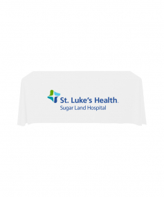 6' Standard PolyPoplin Throw style table cover with one color logo. Designed for quick and easy use while looking great. All corners are rounded meaning they will not gather and lay on the floor. Floor length on all 4 sides. Made from woven polyester. 72" L x 30" D x 29" H