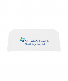 6' Standard PolyPoplin Throw style table cover with one color logo. Designed for quick and easy use while looking great. All corners are rounded meaning they will not gather and lay on the floor. Floor length on all 4 sides. Made from woven polyester. 72" L x 30" D x 29" H