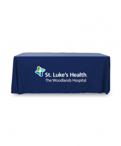 6' Standard PolyPoplin Throw style table cover with one color logo. Designed for quick and easy use while looking great. All corners are rounded meaning they will not gather and lay on the floor. Floor length on all 4 sides. Made from woven polyester. 72" L x 30" D x 29" H