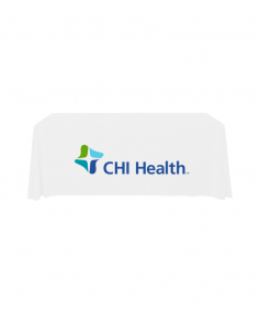 6' Standard PolyPoplin Throw style table cover with one color logo. Designed for quick and easy use while looking great. All corners are rounded meaning they will not gather and lay on the floor. Floor length on all 4 sides. Made from woven polyester. 72" L x 30" D x 29" H