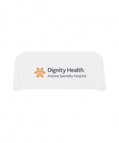 6' Standard PolyPoplin Throw style table cover with one color logo. Designed for quick and easy use while looking great. All corners are rounded meaning they will not gather and lay on the floor. Floor length on all 4 sides. Made from woven polyester. 72" L x 30" D x 29" H