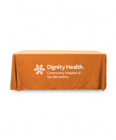 6' Standard PolyPoplin Throw style table cover with one color logo. Designed for quick and easy use while looking great. All corners are rounded meaning they will not gather and lay on the floor. Floor length on all 4 sides. Made from woven polyester. 72" L x 30" D x 29" H