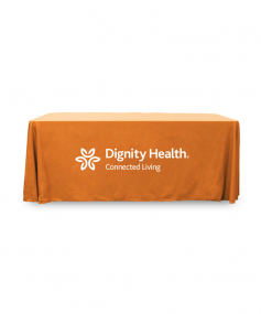 6' Standard PolyPoplin Throw style table cover with one color logo. Designed for quick and easy use while looking great. All corners are rounded meaning they will not gather and lay on the floor. Floor length on all 4 sides. Made from woven polyester. 72" L x 30" D x 29" H