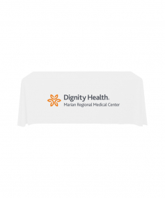 6' Standard PolyPoplin Throw style table cover with one color logo. Designed for quick and easy use while looking great. All corners are rounded meaning they will not gather and lay on the floor. Floor length on all 4 sides. Made from woven polyester. 72" L x 30" D x 29" H