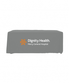 6' Standard PolyPoplin Throw style table cover with one color logo. Designed for quick and easy use while looking great. All corners are rounded meaning they will not gather and lay on the floor. Floor length on all 4 sides. Made from woven polyester. 72" L x 30" D x 29" H
