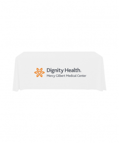 6' Standard PolyPoplin Throw style table cover with one color logo. Designed for quick and easy use while looking great. All corners are rounded meaning they will not gather and lay on the floor. Floor length on all 4 sides. Made from woven polyester. 72" L x 30" D x 29" H