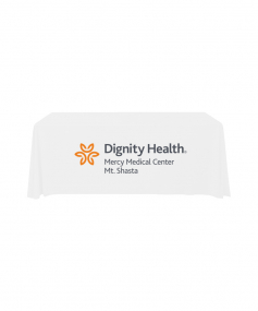 6' Standard PolyPoplin Throw style table cover with one color logo. Designed for quick and easy use while looking great. All corners are rounded meaning they will not gather and lay on the floor. Floor length on all 4 sides. Made from woven polyester. 72" L x 30" D x 29" H