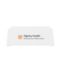 6' Standard PolyPoplin Throw style table cover with one color logo. Designed for quick and easy use while looking great. All corners are rounded meaning they will not gather and lay on the floor. Floor length on all 4 sides. Made from woven polyester. 72" L x 30" D x 29" H