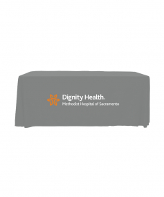 6' Standard PolyPoplin Throw style table cover with one color logo. Designed for quick and easy use while looking great. All corners are rounded meaning they will not gather and lay on the floor. Floor length on all 4 sides. Made from woven polyester. 72" L x 30" D x 29" H