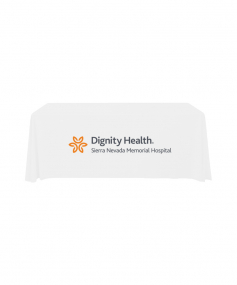 6' Standard PolyPoplin Throw style table cover with one color logo. Designed for quick and easy use while looking great. All corners are rounded meaning they will not gather and lay on the floor. Floor length on all 4 sides. Made from woven polyester. 72" L x 30" D x 29" H