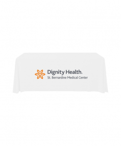 6' Standard PolyPoplin Throw style table cover with one color logo. Designed for quick and easy use while looking great. All corners are rounded meaning they will not gather and lay on the floor. Floor length on all 4 sides. Made from woven polyester. 72" L x 30" D x 29" H