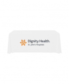 6' Standard PolyPoplin Throw style table cover with one color logo. Designed for quick and easy use while looking great. All corners are rounded meaning they will not gather and lay on the floor. Floor length on all 4 sides. Made from woven polyester. 72" L x 30" D x 29" H