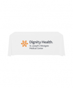 6' Standard PolyPoplin Throw style table cover with one color logo. Designed for quick and easy use while looking great. All corners are rounded meaning they will not gather and lay on the floor. Floor length on all 4 sides. Made from woven polyester. 72" L x 30" D x 29" H