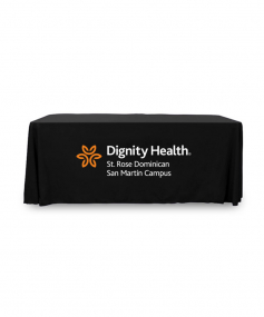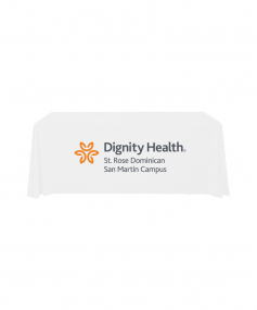 6' Standard PolyPoplin Throw style table cover with one color logo. Designed for quick and easy use while looking great. All corners are rounded meaning they will not gather and lay on the floor. Floor length on all 4 sides. Made from woven polyester. 72" L x 30" D x 29" H