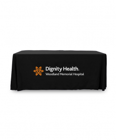 6' Standard PolyPoplin Throw style table cover with one color logo. Designed for quick and easy use while looking great. All corners are rounded meaning they will not gather and lay on the floor. Floor length on all 4 sides. Made from woven polyester. 72" L x 30" D x 29" H