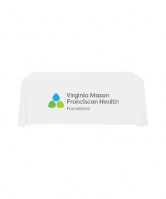 6' Standard PolyPoplin Throw style table cover with one color logo. Designed for quick and easy use while looking great. All corners are rounded meaning they will not gather and lay on the floor. Floor length on all 4 sides. Made from woven polyester. 72" L x 30" D x 29" H