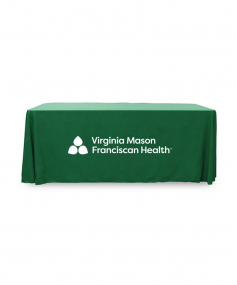 6' Standard PolyPoplin Throw style table cover with one color logo. Designed for quick and easy use while looking great. All corners are rounded meaning they will not gather and lay on the floor. Floor length on all 4 sides. Made from woven polyester. 72" L x 30" D x 29" H