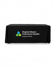 6' Standard PolyPoplin Throw style table cover with one color logo. Designed for quick and easy use while looking great. All corners are rounded meaning they will not gather and lay on the floor. Floor length on all 4 sides. Made from woven polyester. 72" L x 30" D x 29" H