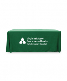6' Standard PolyPoplin Throw style table cover with one color logo. Designed for quick and easy use while looking great. All corners are rounded meaning they will not gather and lay on the floor. Floor length on all 4 sides. Made from woven polyester. 72" L x 30" D x 29" H