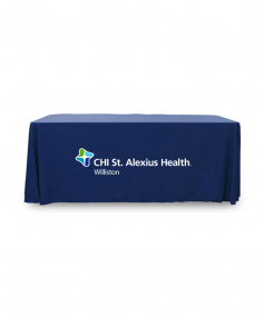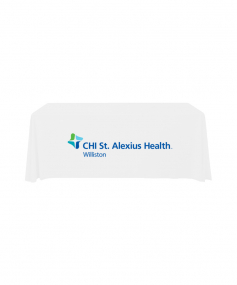 6' Standard PolyPoplin Throw style table cover with one color logo. Designed for quick and easy use while looking great. All corners are rounded meaning they will not gather and lay on the floor. Floor length on all 4 sides. Made from woven polyester. 72" L x 30" D x 29" H