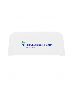 6' Standard PolyPoplin Throw style table cover with one color logo. Designed for quick and easy use while looking great. All corners are rounded meaning they will not gather and lay on the floor. Floor length on all 4 sides. Made from woven polyester. 72" L x 30" D x 29" H