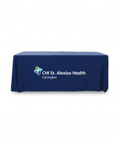 6' Standard PolyPoplin Throw style table cover with one color logo. Designed for quick and easy use while looking great. All corners are rounded meaning they will not gather and lay on the floor. Floor length on all 4 sides. Made from woven polyester. 72" L x 30" D x 29" H