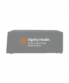 6' Standard PolyPoplin Throw style table cover with one color logo. Designed for quick and easy use while looking great. All corners are rounded meaning they will not gather and lay on the floor. Floor length on all 4 sides. Made from woven polyester. 72" L x 30" D x 29" H