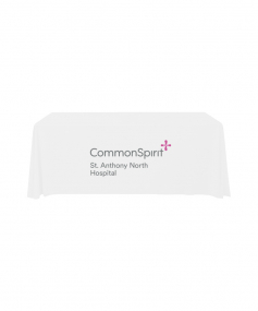 6' Standard PolyPoplin Throw style table cover with one color logo. Designed for quick and easy use while looking great. All corners are rounded meaning they will not gather and lay on the floor. Floor length on all 4 sides. Made from woven polyester. 72" L x 30" D x 29" H
