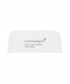 6' Standard PolyPoplin Throw style table cover with one color logo. Designed for quick and easy use while looking great. All corners are rounded meaning they will not gather and lay on the floor. Floor length on all 4 sides. Made from woven polyester. 72" L x 30" D x 29" H