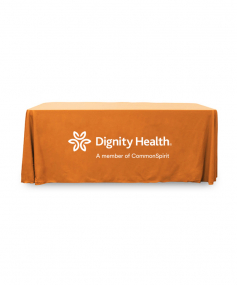 6' Standard PolyPoplin Throw style table cover with one color logo. Designed for quick and easy use while looking great. All corners are rounded meaning they will not gather and lay on the floor. Floor length on all 4 sides. Made from woven polyester. 72" L x 30" D x 29" H