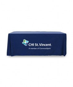 6' Standard PolyPoplin Throw style table cover with one color logo. Designed for quick and easy use while looking great. All corners are rounded meaning they will not gather and lay on the floor. Floor length on all 4 sides. Made from woven polyester. 72" L x 30" D x 29" H