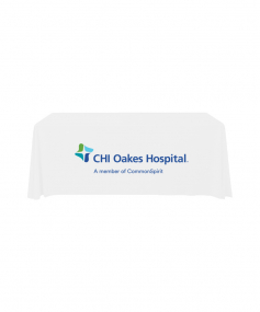 6' Standard PolyPoplin Throw style table cover with one color logo. Designed for quick and easy use while looking great. All corners are rounded meaning they will not gather and lay on the floor. Floor length on all 4 sides. Made from woven polyester. 72" L x 30" D x 29" H