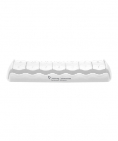 7 rounded compartments provide easy access to pills.