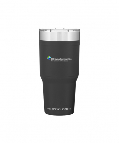 30 oz double wall 18/8 stainless steel thermal tumbler with copper vacuum insulation, clear push-on lid with sliding closure, and powder coated finish