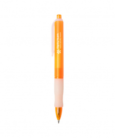 Wide body retractable gel pen with rubber grip. Ferrule and plunger with natural clip and grip. Protective ballpoint covering included. High quality Gel ink. 5 3/4" L x 15/32" Diameter.