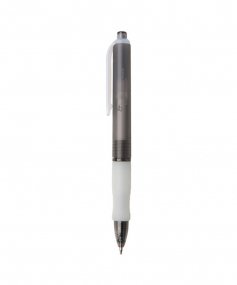 Wide body retractable gel pen with rubber grip. Ferrule and plunger with natural clip and grip. Protective ballpoint covering included. High quality Gel ink. 5 3/4" L x 15/32" Diameter.