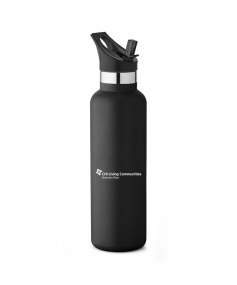 20 oz. Narrow-mouth vacuum-insulated bottle. Features a flip-top straw lid with ergonomic top finger loop. Keeps contents cold for 24 hours. Powder coat finish with copper lining, double wall 18/8 stainless steel, proprietary BPA-free insulated lid. Bottle comes with both screw-on lid and straw lid. 11" H x 2 7/8" Diameter.