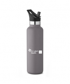 20 oz. Narrow-mouth vacuum-insulated bottle. Features a flip-top straw lid with ergonomic top finger loop. Keeps contents cold for 24 hours. Powder coat finish with copper lining, double wall 18/8 stainless steel, proprietary BPA-free insulated lid. Bottle comes with both screw-on lid and straw lid. 11" H x 2 7/8" Diameter.