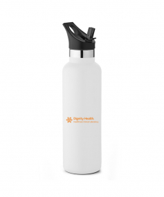 20 oz. Narrow-mouth vacuum-insulated bottle. Features a flip-top straw lid with ergonomic top finger loop. Keeps contents cold for 24 hours. Powder coat finish with copper lining, double wall 18/8 stainless steel, proprietary BPA-free insulated lid. Bottle comes with both screw-on lid and straw lid. 11" H x 2 7/8" Diameter.