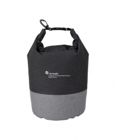 Keeps your items dry and comes in a chic two-tone design. It has a roll top closure with a buckle to connect to other bags and a carabiner clip to connect to a backpack or tether to a raft rope. Made from heathered 300D polyester, it has a 5 liter capacity and can float if dropped in water. Complies with Prop 65. 7" W x 13" H x 7" D