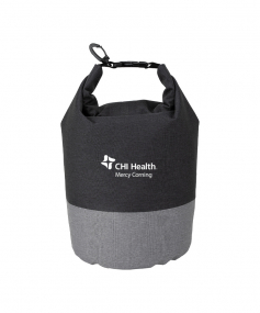 Keeps your items dry and comes in a chic two-tone design. It has a roll top closure with a buckle to connect to other bags and a carabiner clip to connect to a backpack or tether to a raft rope. Made from heathered 300D polyester, it has a 5 liter capacity and can float if dropped in water. Complies with Prop 65. 7" W x 13" H x 7" D