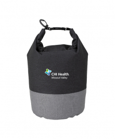 Keeps your items dry and comes in a chic two-tone design. It has a roll top closure with a buckle to connect to other bags and a carabiner clip to connect to a backpack or tether to a raft rope. Made from heathered 300D polyester, it has a 5 liter capacity and can float if dropped in water. Complies with Prop 65. 7" W x 13" H x 7" D