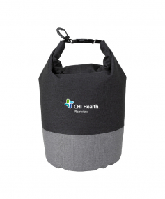 Keeps your items dry and comes in a chic two-tone design. It has a roll top closure with a buckle to connect to other bags and a carabiner clip to connect to a backpack or tether to a raft rope. Made from heathered 300D polyester, it has a 5 liter capacity and can float if dropped in water. Complies with Prop 65. 7" W x 13" H x 7" D